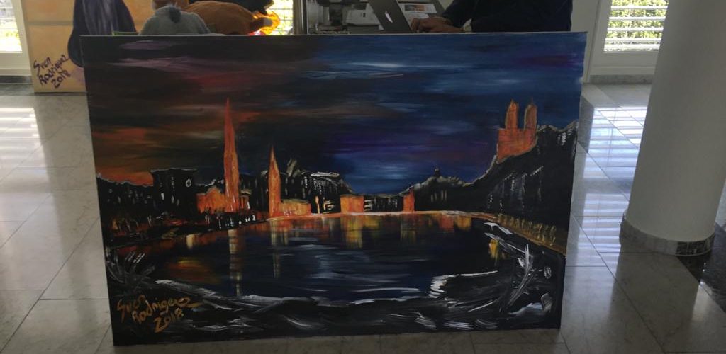 Kunstmaler Sven Rodriguez malt Aquarell – wie Acrylbilder, die zum Verkauf stehen. Je nach Preis des Bildes, gehen bis zu 50% an die Stiftung Los Pikines, in der Dominikanischen Republik.
